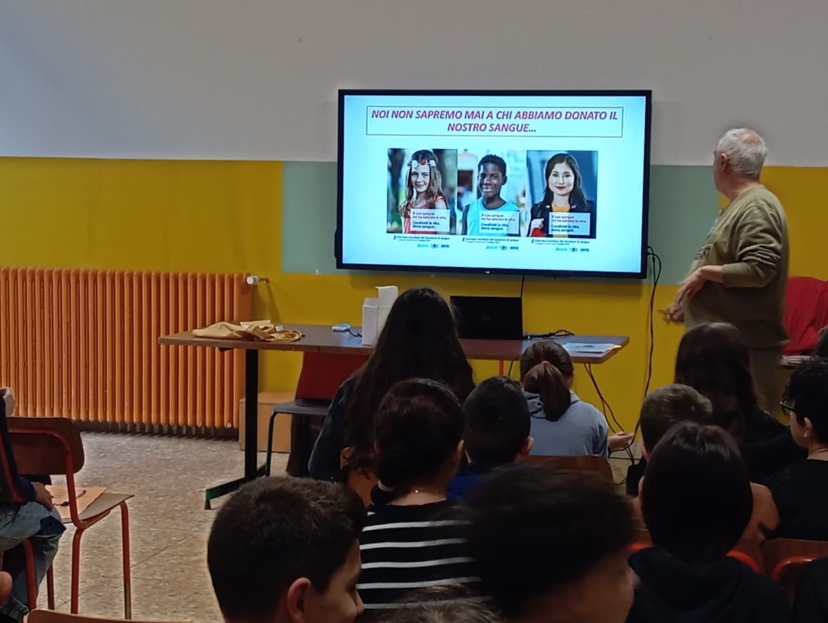 Il signor Leonardo ha spiegato ai bambini che cosa significa l’acronimo AVIS: Associazione Volontari Italiani del Sangue.