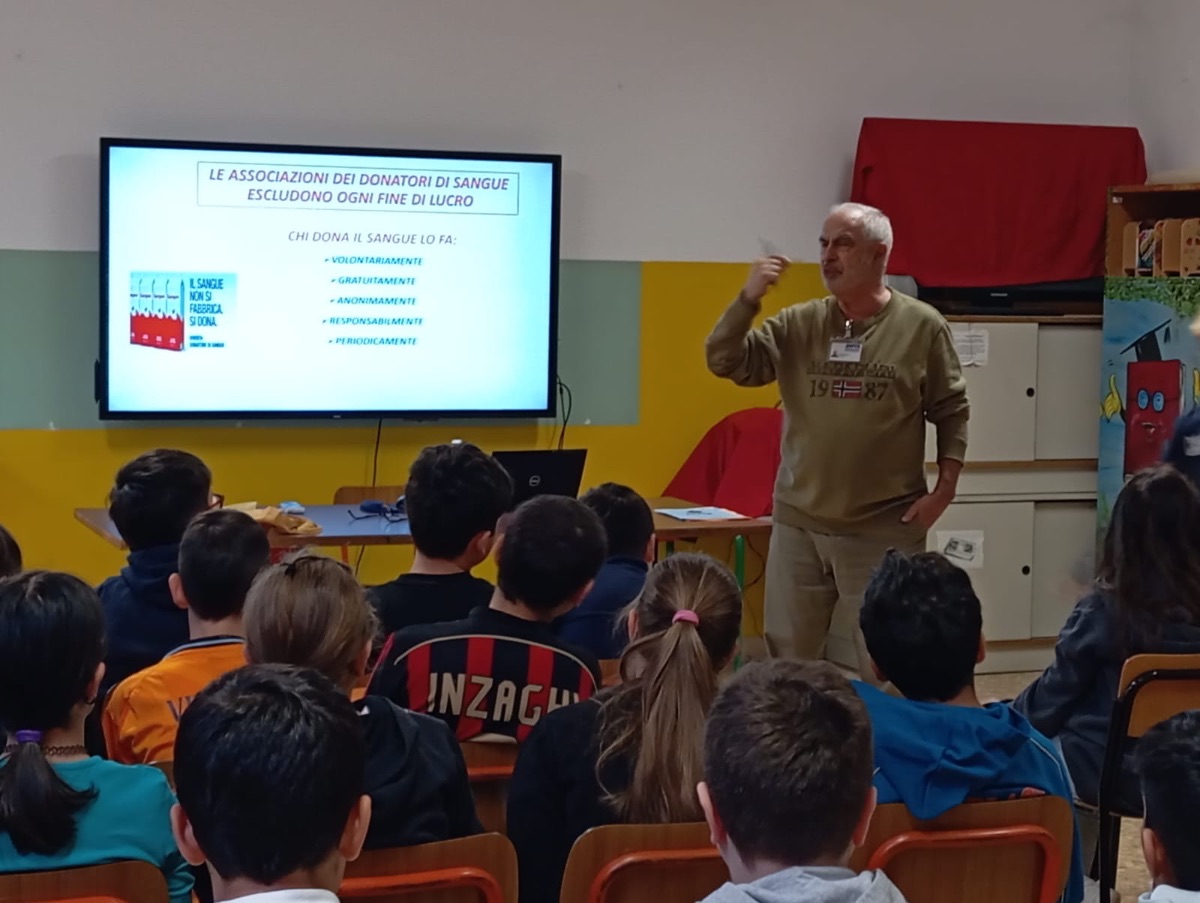 Lunedì 13 aprile 2026, le classi quinte della scuola primaria Carducci dell’Istituto Comprensivo “G. Carducci” di San Vittore Olona, guidato dalla dirigente dott.ssa Teresa Grillo, hanno incontrato il signor Leonardo, volontario dell’AVIS di Legnano.